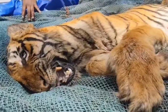 കടുവയെ ടാര്പോളിനില് പൊതിഞ്ഞ് പുറത്തെത്തിച്ചു. തുടര്ന്ന് തേക്കടിയിലേക്ക്…
