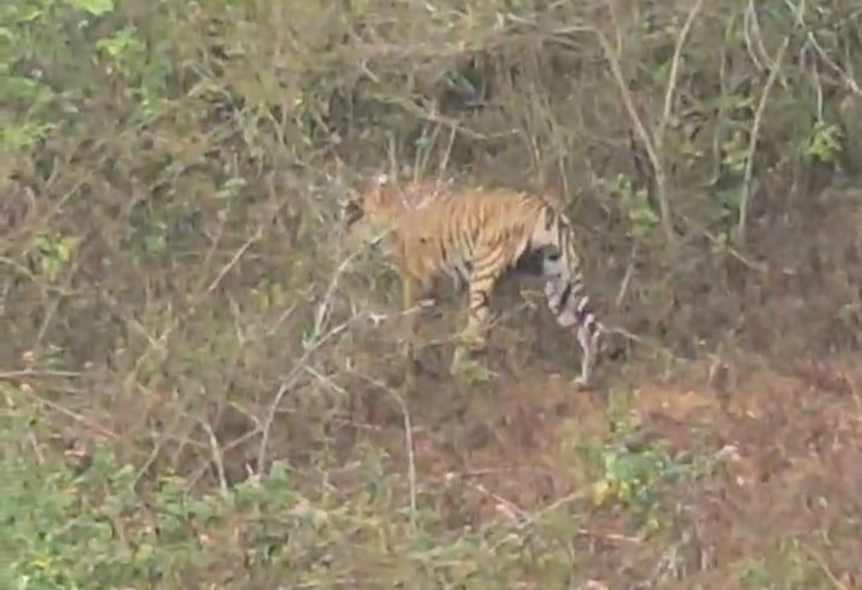 ഗ്രാമ്പി എസ്റ്റേറ്റിലെ ആറാം നമ്പര് ഫാക്ടറിക്ക് സമീപം വൈകിട്ട് ആറോടെ ഭീമന് കടുവയെ നാട്ടുകാര് കാണുന്നു. തേയിലക്കാട്ടിനുള്ളിലെ ചതുപ്പില് കിടക്കുന്ന നിലയിലായിരുന്നു. ഒരു മണിക്കൂറോളം ചതുപ്പില് കിടന്ന കടുവയുടെ ദൃശ്യങ്ങള് പ്രദേശവാസികള് ക്യാമറയില് പകര്ത്തി.