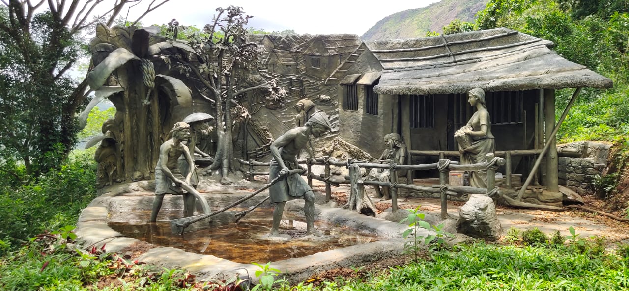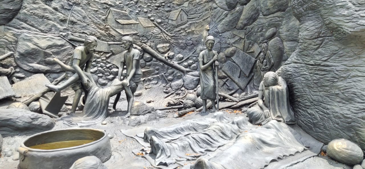 പ്രകൃതിദുരന്തങ്ങളാല് കഷ്ടപ്പെട്ട ജനതയുടെ അനുഭവമാണ് അടുത്ത ദൃശ്യത്തില്. ഉരുള് പൊട്ടിയതിന് ശേഷമുള്ള ഒരു ഗ്രാമത്തിന്റെ നേര്ചിത്രമാണ് ഇവിടെ വെളിവാകുന്നത്. ഉരുള് പൊട്ടി മരിച്ചവരുടെ മൃതദേഹവുമായി ഇരിക്കുന്ന സ്ത്രീ, ഉരുണ്ടു പോയ കല്ലുകള്, രക്ഷപ്രവര്ത്തനം നടത്തുന്ന ജനങ്ങള്, തിരച്ചില് നടത്തുന്നവര്, വീണു കിടക്കുന്ന മരങ്ങള്, തകര്ന്നു പോയ വീടുകള്, നായ്കളും പൂച്ചകളും തുടങ്ങി ദുരന്തമുഖത്തിന്റെ നേര്കാഴ്ച കാണാനാകും. എല്ലാ ദുരിതങ്ങളെയും ദുരന്തങ്ങളെയും അതിജീവിച്ചു ജനങ്ങള് ഇവിടെ ജീവിതം ആരംഭിച്ചതിന്റെ മാതൃകയാണ് അവസാനത്തെ സ്മാരകം. വീടുകള്, വ്യാപാരത്തിനായി കാളവണ്ടിയില് പോകുന്നവര്, പശു തൊഴുത്ത്, കപ്പയുമായി പോകുന്ന കര്ഷകന്, ഉരല് ഉപയോഗിക്കുന്ന സ്ത്രീ, കളിക്കുന്ന കുട്ടി തുടങ്ങിയ വിവിധതരം കാഴ്ചകള് ഇവിടെ ഒരുക്കിയിട്ടുണ്ട്. ഒരു മലഞ്ചെരുവില് വിവിധ ഗ്രാമങ്ങളായി ചിത്രീകരിച്ചു നിര്മാണം പൂര്ത്തിയായ ശില്പങ്ങള്ക്ക് മികച്ച ലൈറ്റ് സംവിധാനവും സജ്ജികരിച്ചിട്ടുണ്ട്. കൂടാതെ ഇരിപ്പിടങ്ങളും പാതയോരങ്ങളില് ഒരുക്കിയിട്ടുണ്ട്. പദ്ധതിയുടെ അടുത്ത ഘട്ടത്തില് ഉദ്യാനവും, കുട്ടികള്ക്കായി പാര്ക്കും ആരംഭിക്കും.