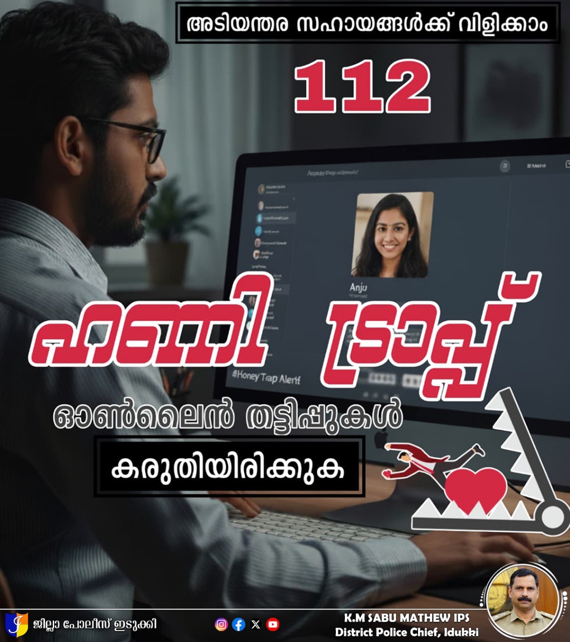 തൊടുപുഴ: ഹണി ട്രാപ്പിൽ അകപ്പെടാതിരിക്കാൻ ജാഗ്രത നിർദേശവുമായി അധികൃതർ. ഒരു വ്യക്തിയെ വഞ്ചിക്കുക, ചൂഷണം ചെയ്യുക, അല്ലെങ്കിൽ സ്വകാര്യ വിവരങ്ങൾ ചോർത്തുക തുടങ്ങിയ ലക്ഷ്യങ്ങളോടെ, വ്യാജമായ പ്രണയബന്ധം സ്ഥാപിക്കുന്നതിനെയാണ് ഹണി ട്രാപ്പ് എന്ന് പറയുന്നത്. സാധാരണയായി, ഒരു ഓൺലൈൻ പ്ലാറ്റ്ഫോം വഴിയോ മറ്റോ സൗഹൃദം സ്ഥാപിച്ച്, വളരെ അടുപ്പം കാണിച്ചശേഷം സാമ്പത്തികമായി ചൂഷണം ചെയ്യാനോ വ്യക്തിപരമായ വിവരങ്ങൾ കൈക്കലാക്കാനോ ശ്രമിക്കുന്നതാണ് ഇതിന്റെ രീതി.